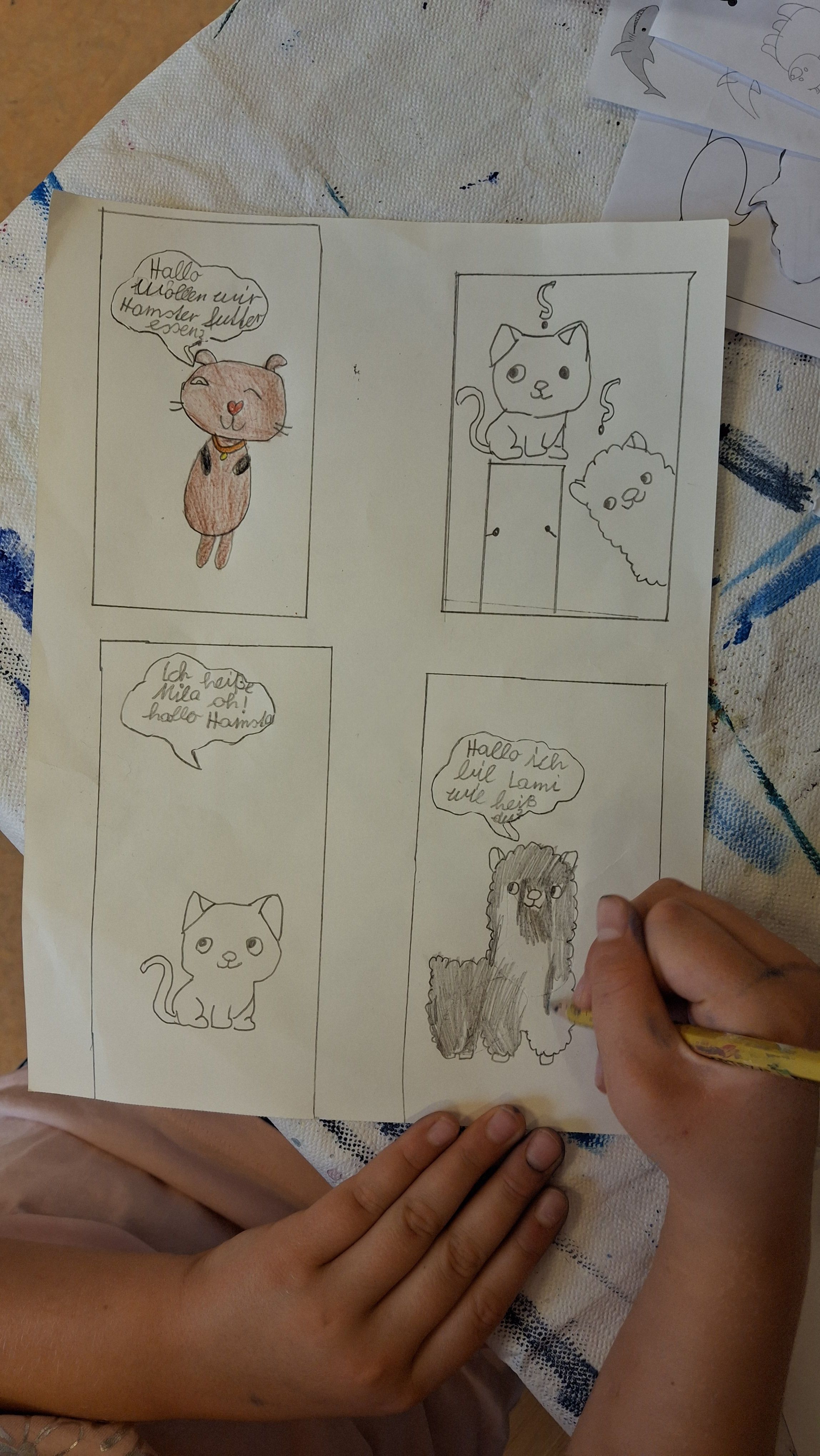 In diesem Workshop wird sich mit dem Medium Comic und Manga auseinandergesetzt. Begonnen wird mit einer Seitenaufteilung, nachfolgend wird sich eine kurze Geschichte ausgedacht und erprobt, wie man diese über mehrere Panels hinweg bildlich erzählen kann. Falls schon eigene Zeichnungen oder Figuren vorhanden sind, dürfen diese gerne zum Kurs mitgebracht werden.