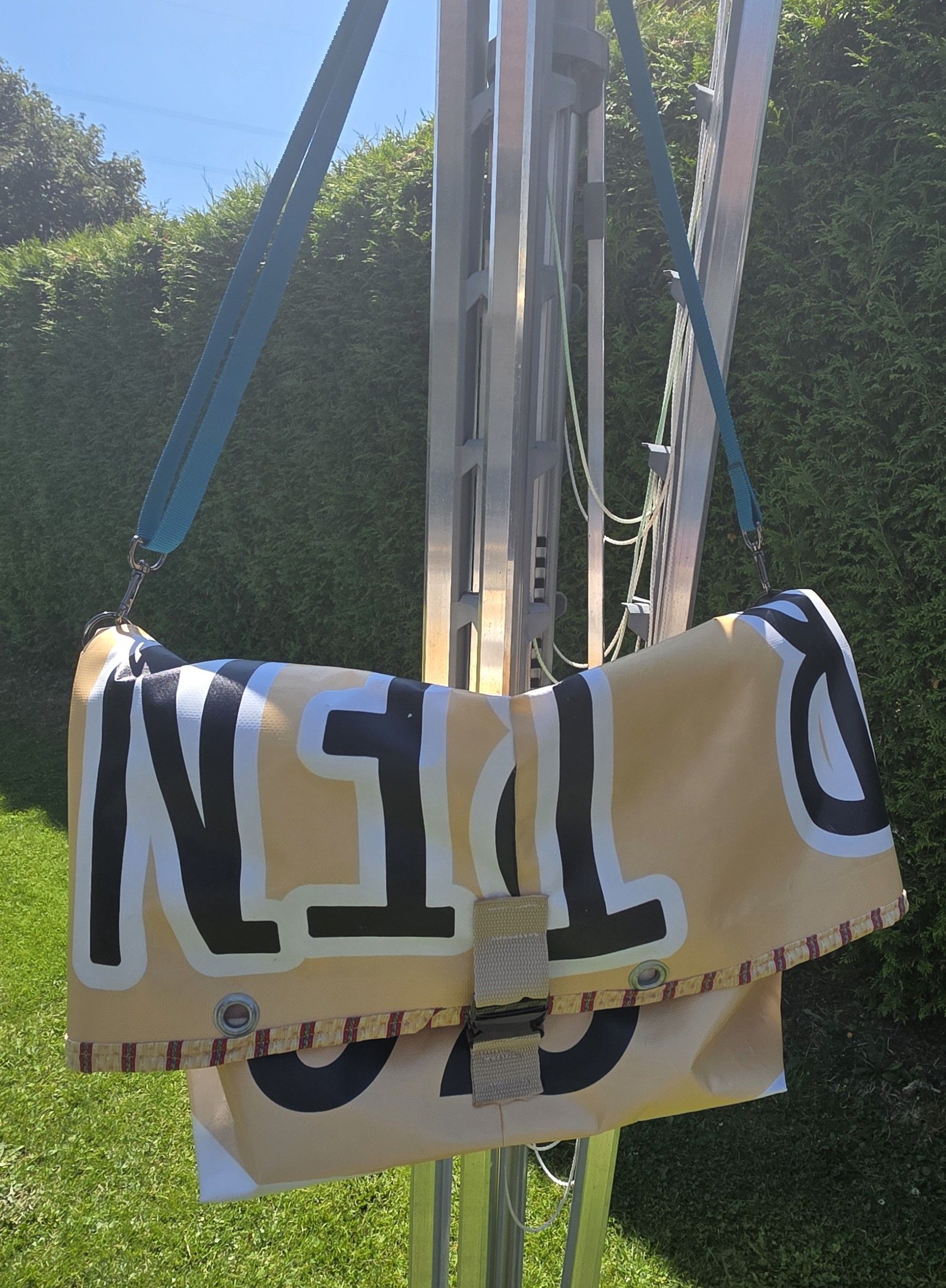Warum immer mit Stoff nähen? Man kann auch aus ausrangierten Werbe-Bannern eine individuelle Tasche nähen.